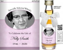 Personalised miniature bottles of alcoholic drinks supplied with funeral favour labels, in celebration of the life or in memory of a loved one, which. more info